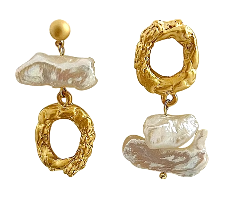 "Aurora Baroque Earrings" – Inspired by the organic beauty of baroque pearls and textured gold, these earrings evoke a celestial and timeless elegance